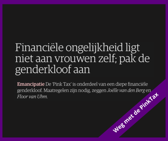 ‘FinanciĆ«le ongelijkheid ligt niet aan vrouwen zelf; pak de zenderkloof aan’ Issue Killers heeft een artikel gepubliceerd in het NRC als onderdeel van onze campagne om de Pink Tax aan te pakken. Wil je het artikel lezen? Check dan vooral het artikel.